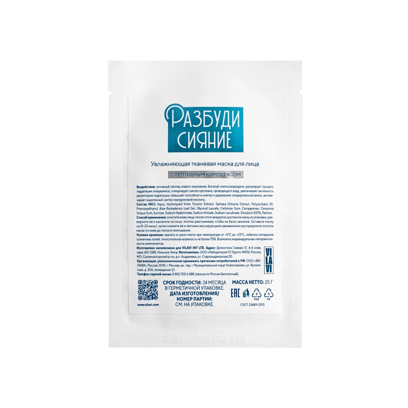 Увлажняющая тканевая маска для лица с пептидным комплексом